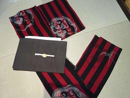 海燕の着物 ゴールデンウィークも中盤に差し掛かり、陽射しもゴールデンな日が続いていますね。 このあたりで気合をいれて、元気な着物を選んでみました。 写真では色味が少し変わってしまいましたが、赤紫と黒の大胆な縞の着物です。 漆で波と海燕が織りこまれています。 帯留は象牙の帆船で。 さあ、いっきに繰り出してまいりましょう! 海燕の単衣着物 81,000円 身丈:4尺3寸(162.9㎝) 裄:1尺7寸(約64.4cm) 絽綴れ帯 32,400円 象牙帆船帯留 34,560円 海老沢