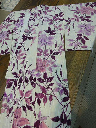 白地に紫の薔薇柄小紋花ざかりの頃となりました。