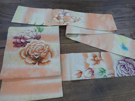 薔薇のふくれ織名古屋帯白地に紫の薔薇柄小紋 21,600円