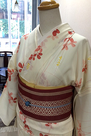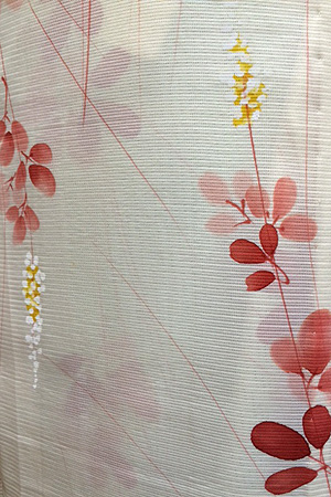 夏に着たい、萩の小紋 夏の着物姿は、目にも涼しくありたいものです。 今回は、爽やかな白地と薄紅色の萩が目を引く、絽の小紋のご紹介です。 衿元に葉の紅が添えられていることで、お顔映りが明るくなります。 萩の花にほんの少し黄色が挿されているほかは、白と紅のみの構成で、すっきりとした印象が素敵な着物です。 涼しげに、さらりとお召し下さいませ。 萩文様の小紋 32,400円 身丈:4尺2寸(約159.6cm) 裄:1尺7寸5分(約66.5cm) 冨永