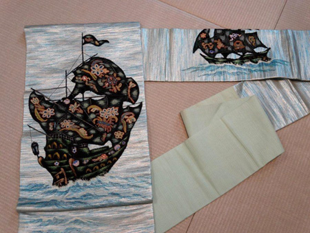 南蛮船アップリケの夏の名古屋帯