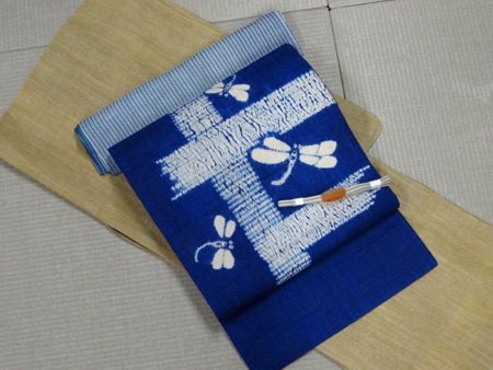 蜻蛉紺青色帯に瑪瑙帯留初秋に入るとそろそろ蜻蛉の季節。