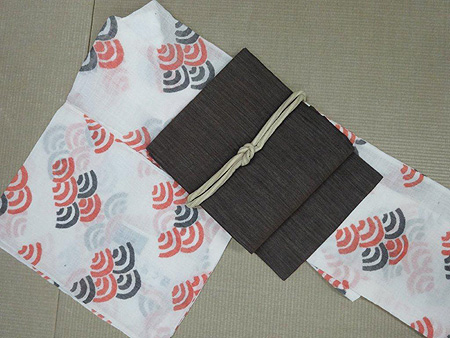 当店オリジナルの麻の丸ぐけを合わせて、麻づくしの爽やかコーディネートの完成です。