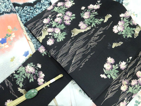 黒地流水に野菊塩瀬名古屋帯 37,800円