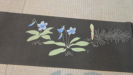 手先には菫の可憐な花。