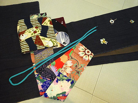 合わせる帯は、染めの見本地で仕立てた名古屋帯。