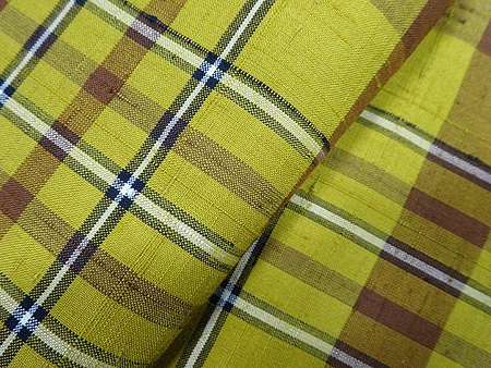 ざっくりとした青と鶯色の市松柄が個性的です。