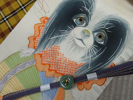 青も鶯色も、どちらも落ち着いた合わせやすい色ですので、大胆な文様ながら初心者さんにも実はおすすめ。