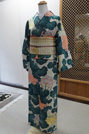 洋花は着物の文様として数多く描かれていますが、一種類のみ、しかもゼラニウム、というのはなかなか珍しいのではないでしょうか。