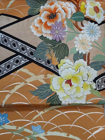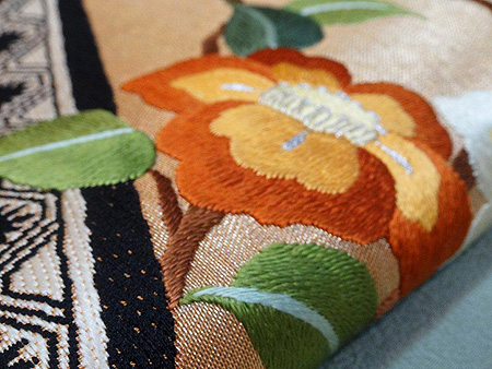 あわせた帯も四季の花々が刺繍された華やかな帯。