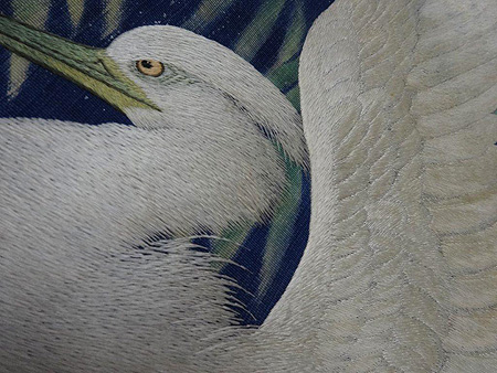 白い絹糸が幾重にも挿され本物にも引けを取らない立体感を生み出しており、当時の職人の高い技術に惚れ惚れとため息が出てしまいます。