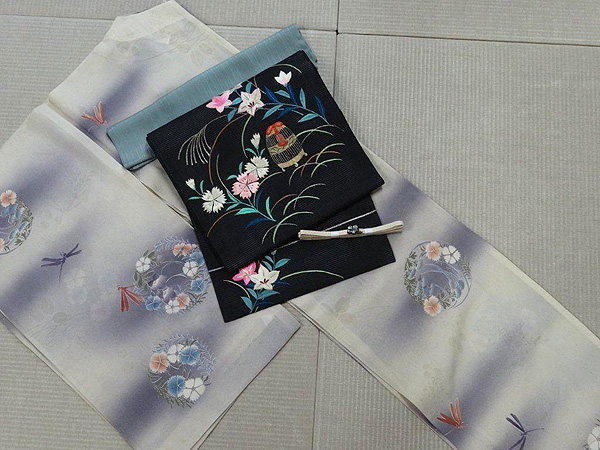 お太鼓には虫籠があり、秋の気配を感じる絵柄。