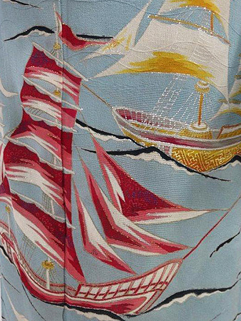 当時この着物を作られたのは大層お洒落な方だったのでしょう。地紋も波、と徹底しています。