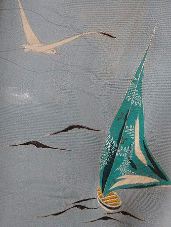 帆船とカモメ紗一つ紋訪問着 (着物16-6-13) ご売約済