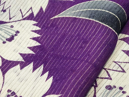 ご紹介の撫子尽くしの小紋は、紫・白・黒の限られた色で描かれていて大人な色の取り合わせです。