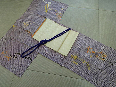 疋田模様に和歌写しの付下単衣に博多開き名古屋帯