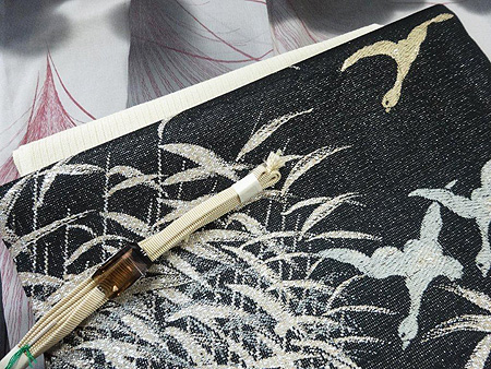 墨色ぼかしすすき単衣小紋に黒地葦に雁文様夏織名古屋帯まずは、月夜の情景をイメージしたこちら。
