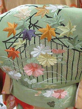 艶のある美しい日本刺繍で、秋の庭先の風景をお楽しみいただけます。