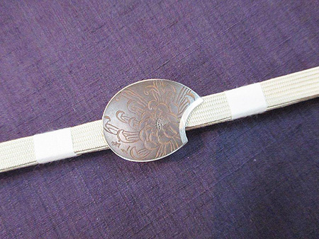 団扇の中に菊が彫り込まれた繊細な帯留を合わせてみました。