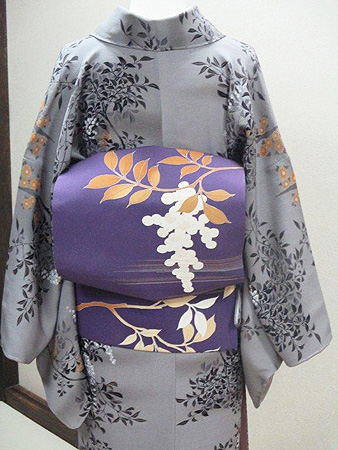 写真の着物と帯は、珍しい白南天の図柄のもの。