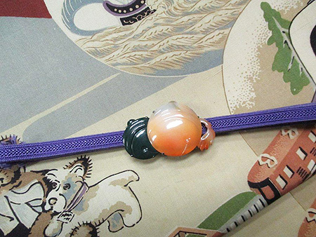出雲石とメノウの鈴帯留