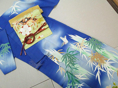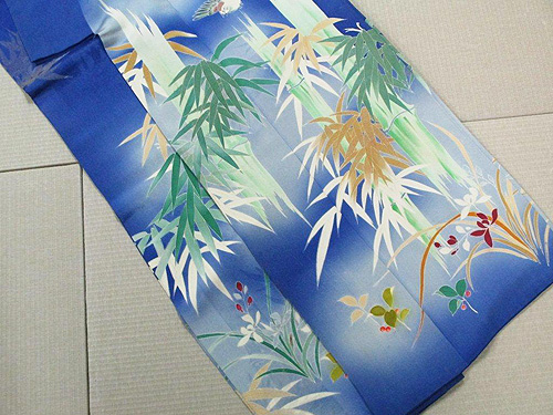 写真の着物は竹藪で戯れる雀の図の訪問着です。