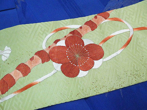 梅に篳篥(ひちりき)の刺繍帯 (帯14-12-30) 80,000円+税