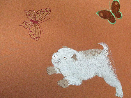 子犬の刺繍名古屋帯 子犬の刺繍名古屋帯