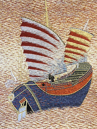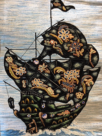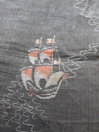アラビア船の刺繍名古屋帯 南蛮船アップリケの夏名古屋帯