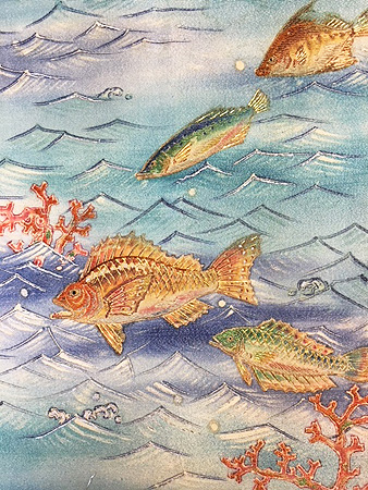 幸せエンジェルたちの名古屋帯 魚たちの海中散歩名古屋帯