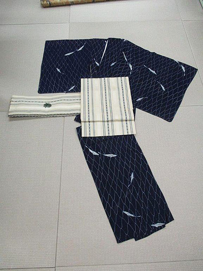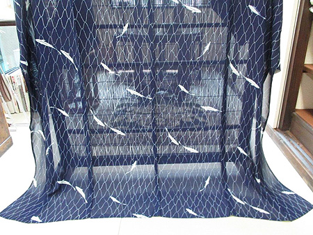 編目紋様に群れ鮎の絽小紋 紗献上帯