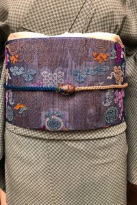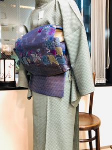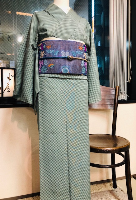 今日のご紹介は、小宮康孝さんの絽紗石畳紋に、瑞雲昇り龍文様の紗帯をあわせてみました。古来から、おしゃれな粋者は、外来の珍品を愛でてきましたが、この帯も中国清朝朝廷の官服を崩して作ったものです。日本の呉服業界も、こういうものからアイデアを得て行ったわけです。