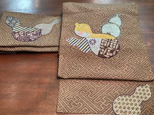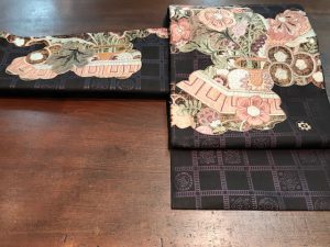 名古屋帯3点と丸帯2点、カシミールの羽織2点です。