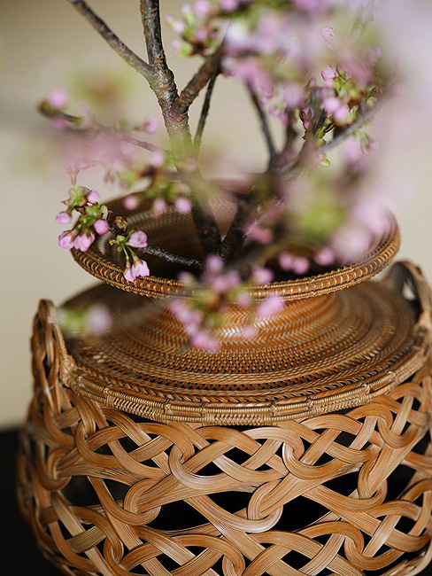 初夏の草木を受容し花入れとしての生命を吹き込まれた籃の姿、表情をご覧ください。