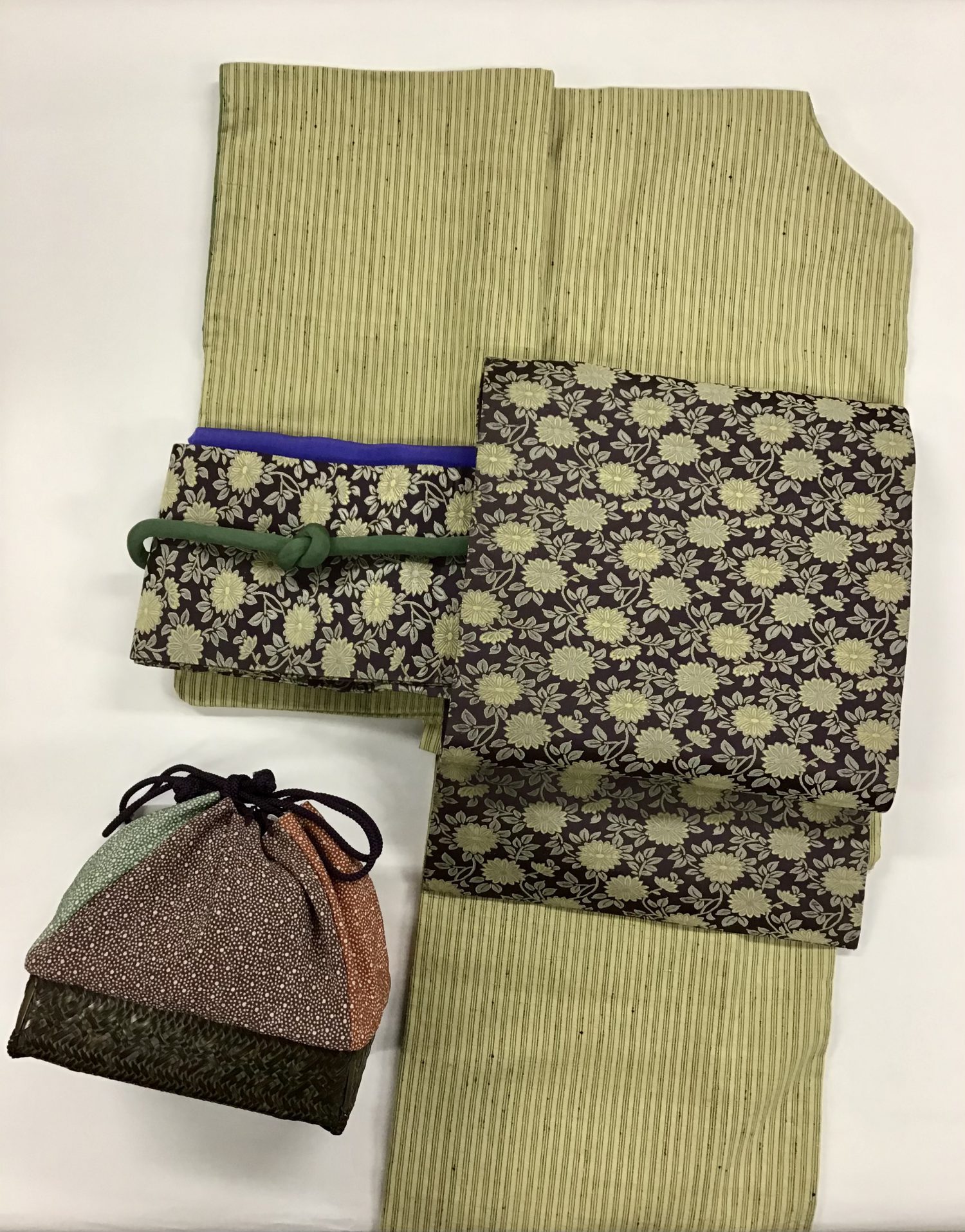 地色は、明るい黄檗(きはだ)色で、黒い縦糸の節がアクセントになって、軽快感を生み出しています。