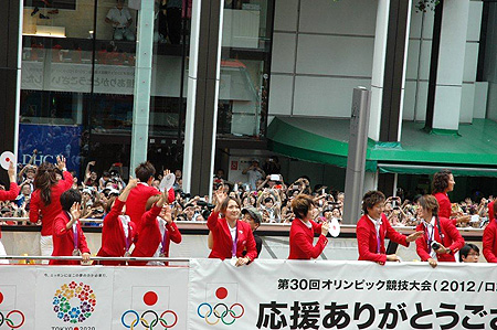 ロンドンオリンピックで史上最多38個のメダルを獲得した日本選手団のパレードが始まる直前の写真。