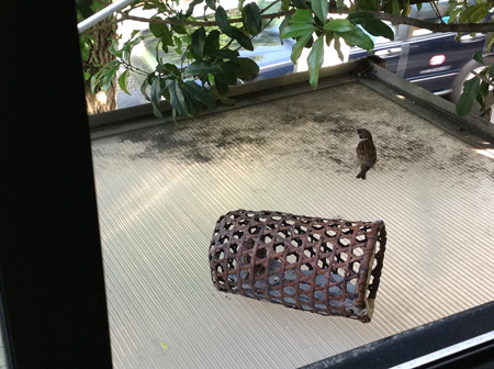 そこで、私達は親鳥が来る事を願ってヒナを籠に入れ、代々木店の屋根の上に置いて見守る事にしました。