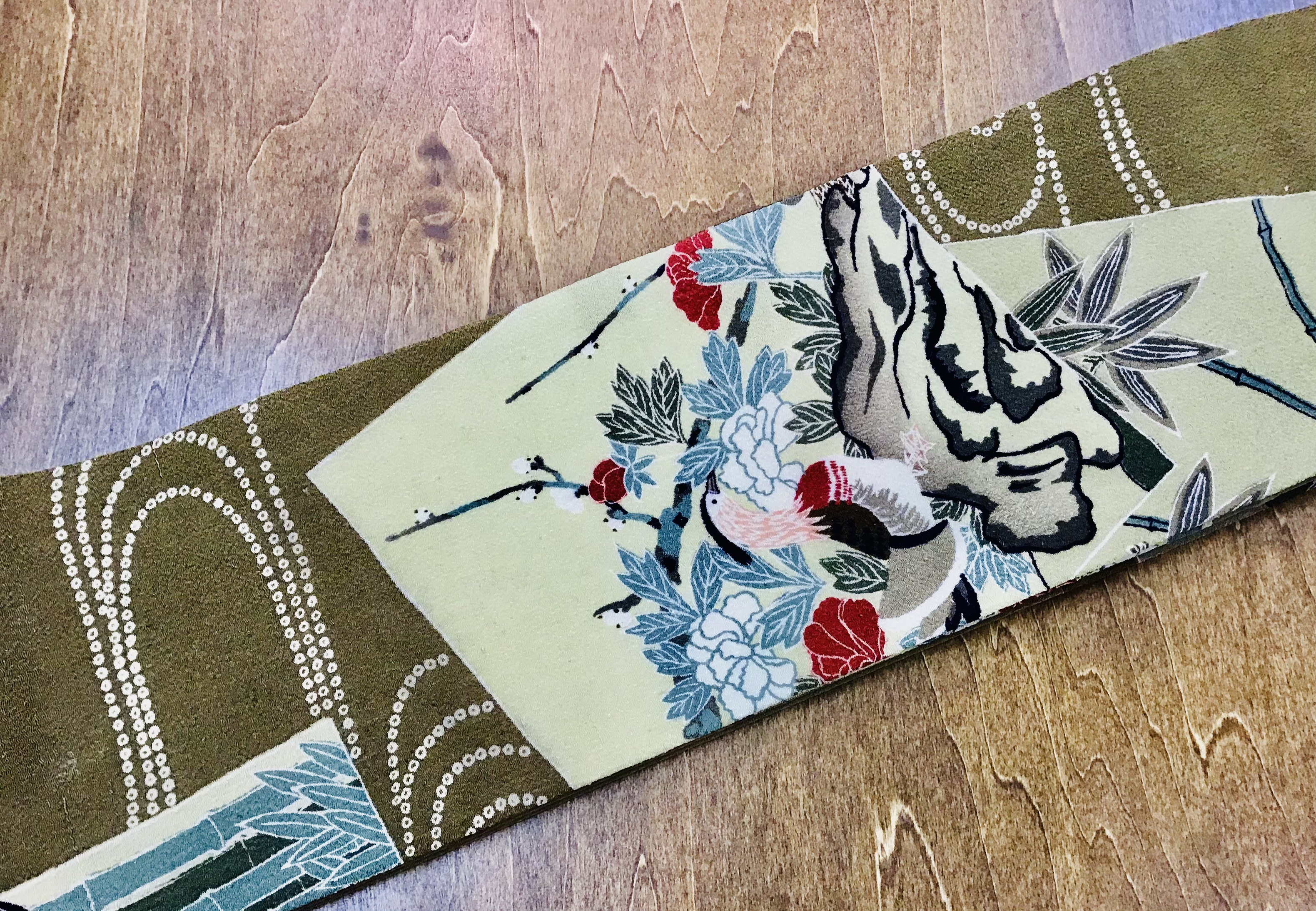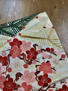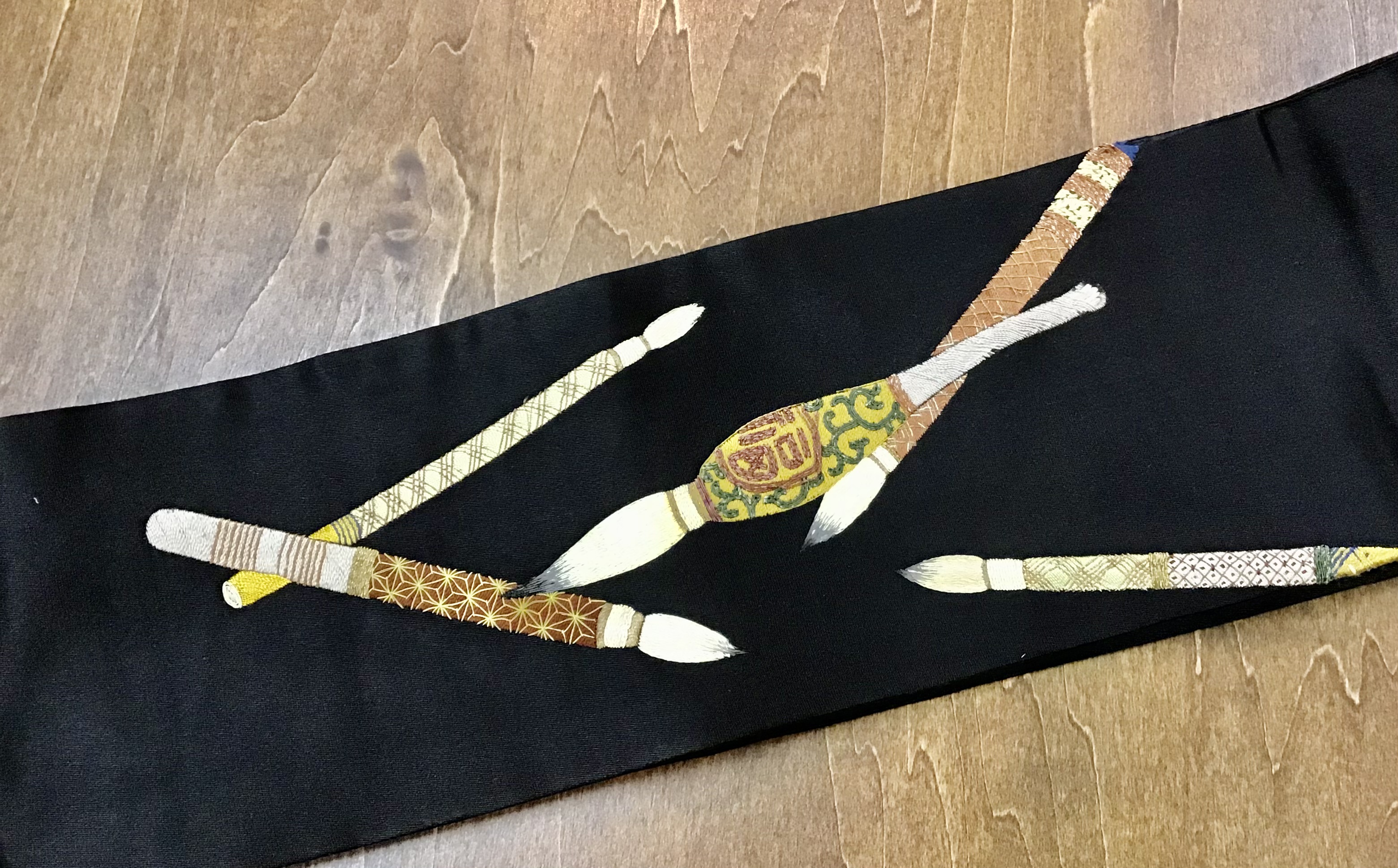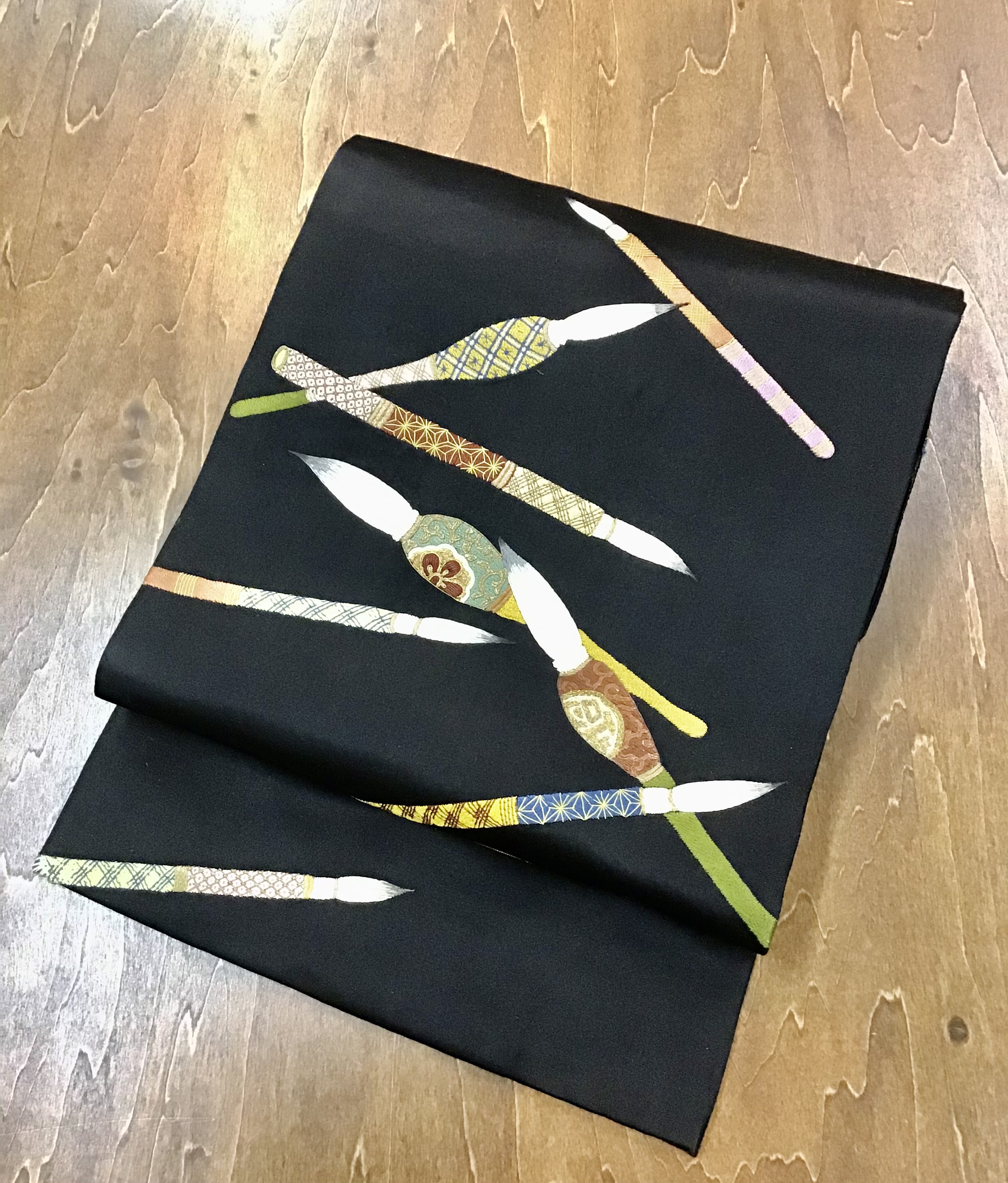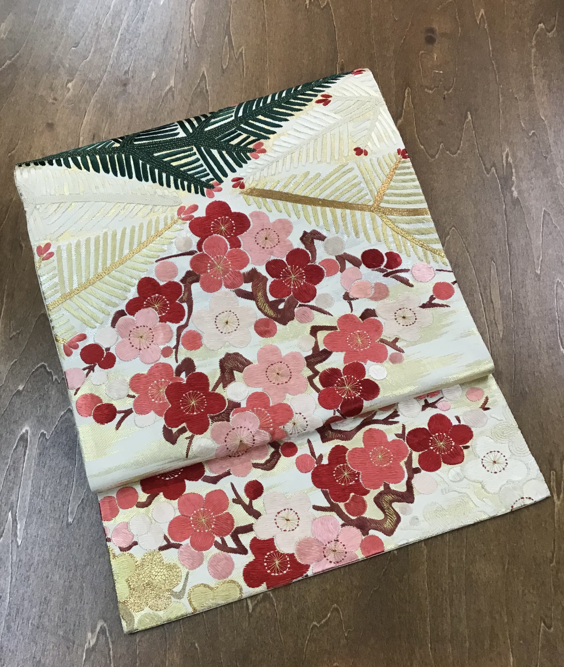 新入荷の帯とお正月向け帯のご紹介! 浦野展も終わりゆったりした空気の中、灯屋2では新しい帯も続々と入荷です。 縁起良さげな福の文字が入った筆が踊っています。 色とりどりの刺繍で描かれている筆達。 少し細めの7寸7分 筆の刺繍名古屋帯 色紙の中、竹藪の愛らしい鶏夫妻。胴前は牡丹に水鳥でしょうか。 流水紋様に色紙散らし名古屋帯 45,000円+税 お正月にぴったりのおめでたい豪華な刺繍が目を引きます。 若松菱文様と紅白梅の刺繍名古屋帯 75,000円+税