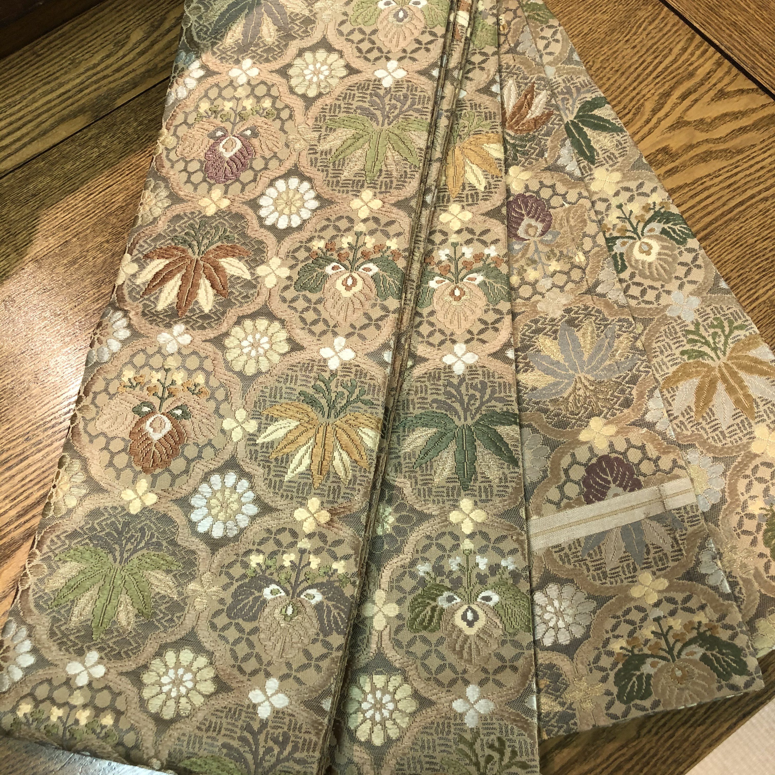 元は丸帯等だったものを灯屋2で半幅帯に仕立て直ししたもので、存在感抜群ですよ。