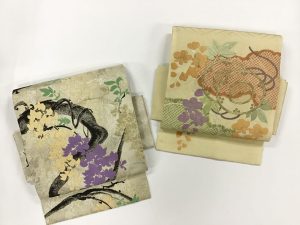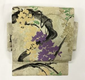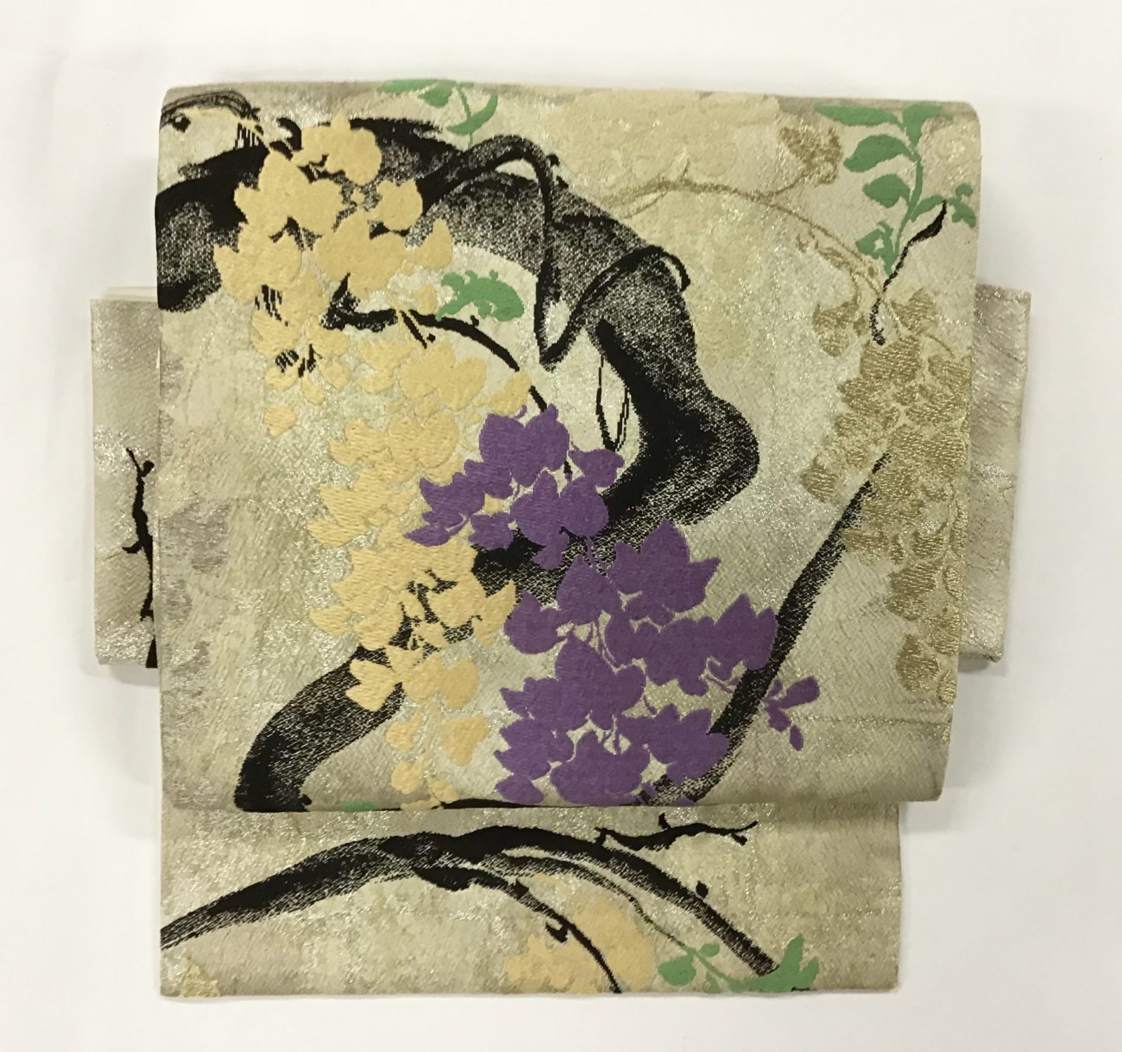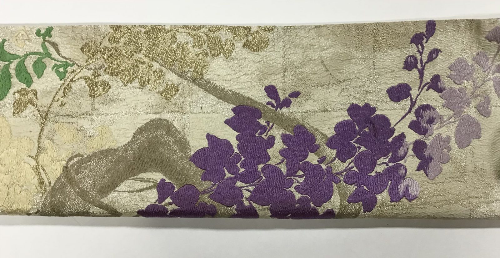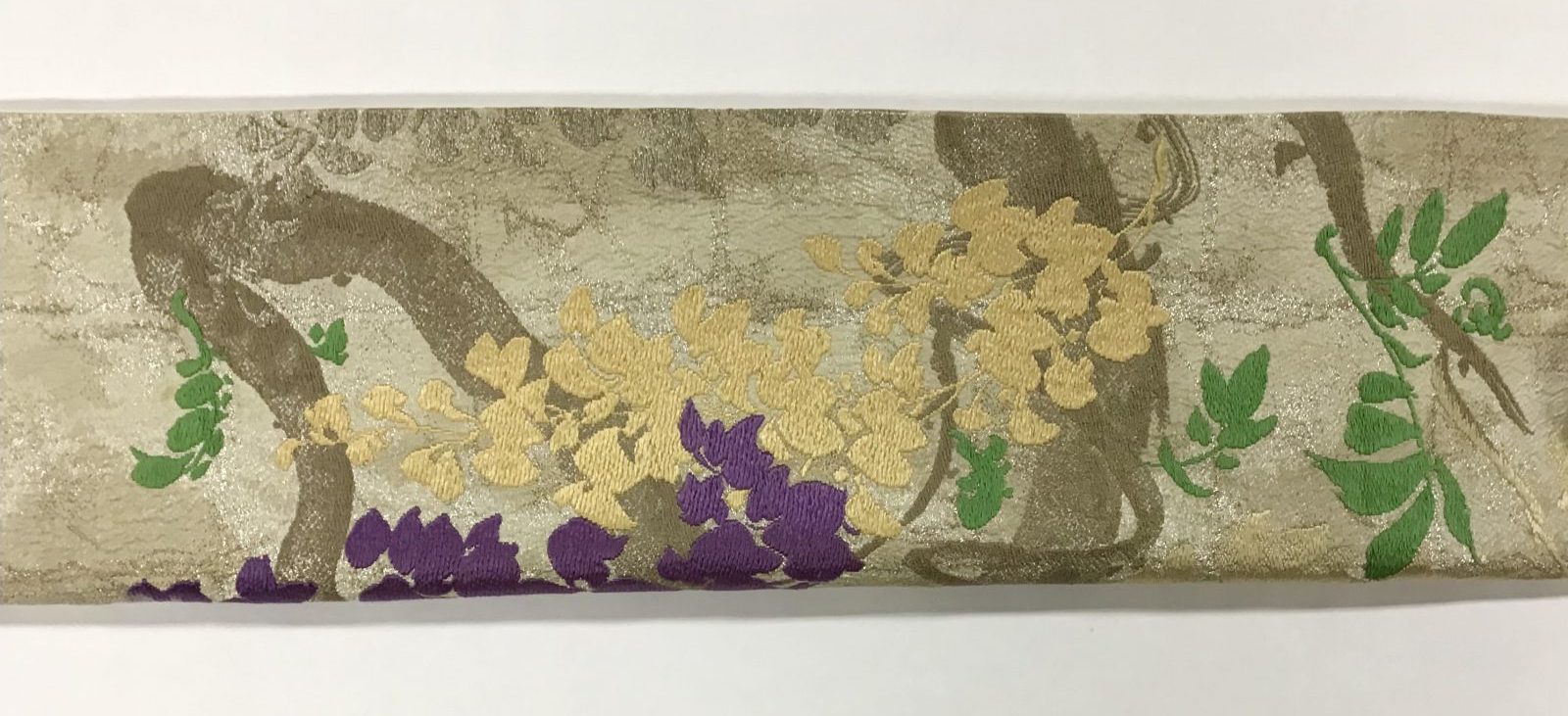 今年は桜も早かったように、藤の花も、早めに咲いてしまったようですね。でも、5月の花は、何と言っても藤なのは変わりません。藤の花の帯で、優美さを纏われては、いかがでしょうか。