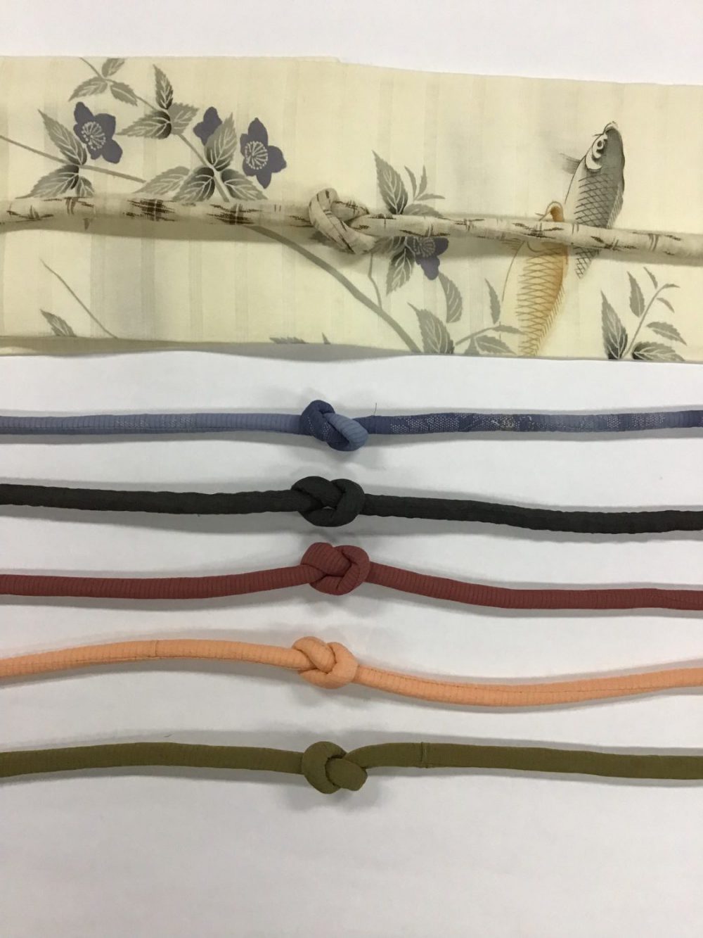 実際使うときは、このように二重になりますが、色合わせのご紹介なので、一結びにしています。