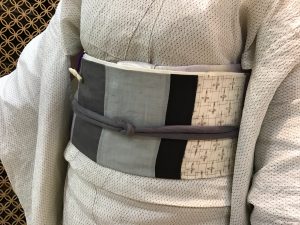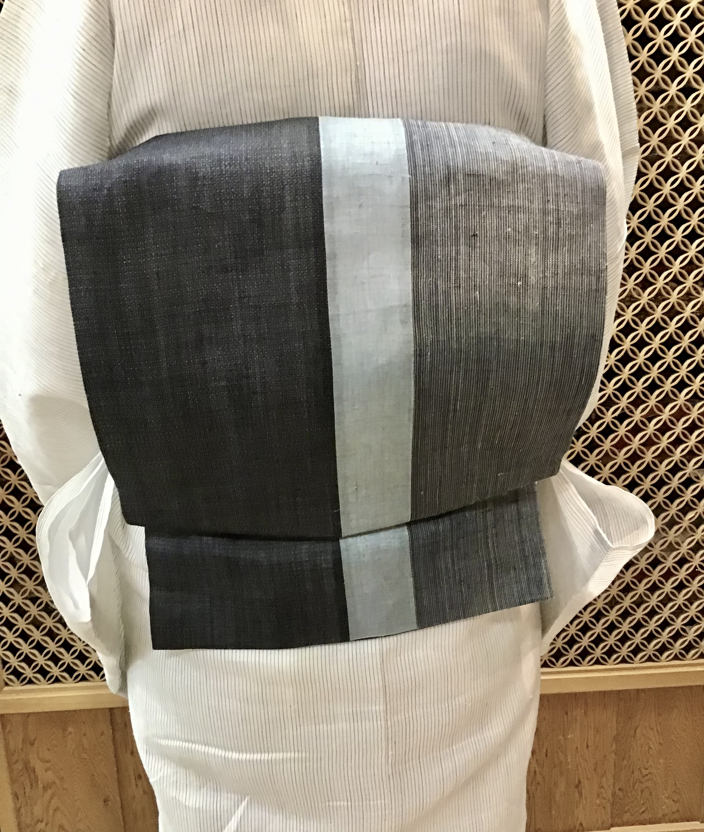 宮古上布に継ぎ帯の明るい色が、やさしくて素敵ですね。