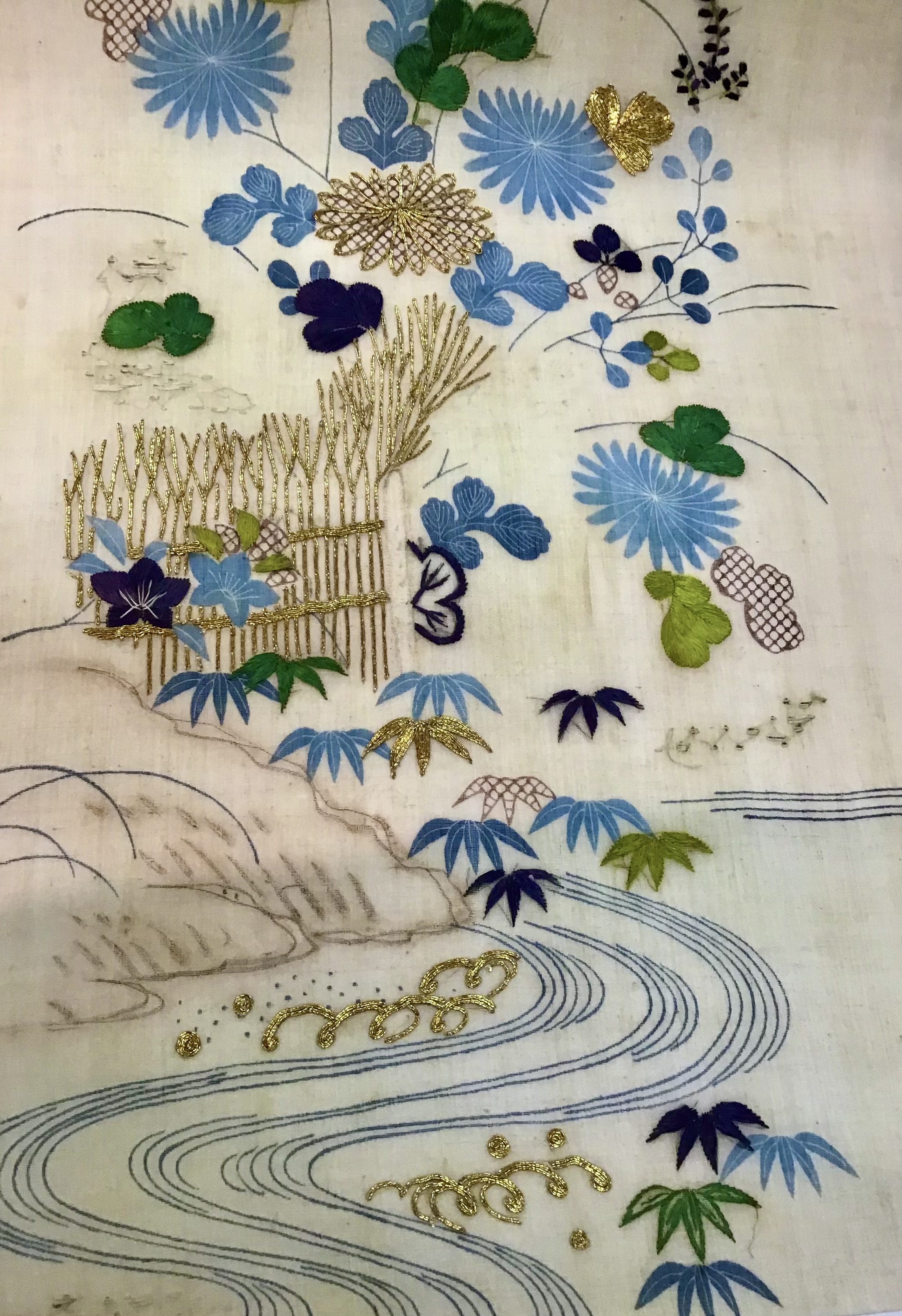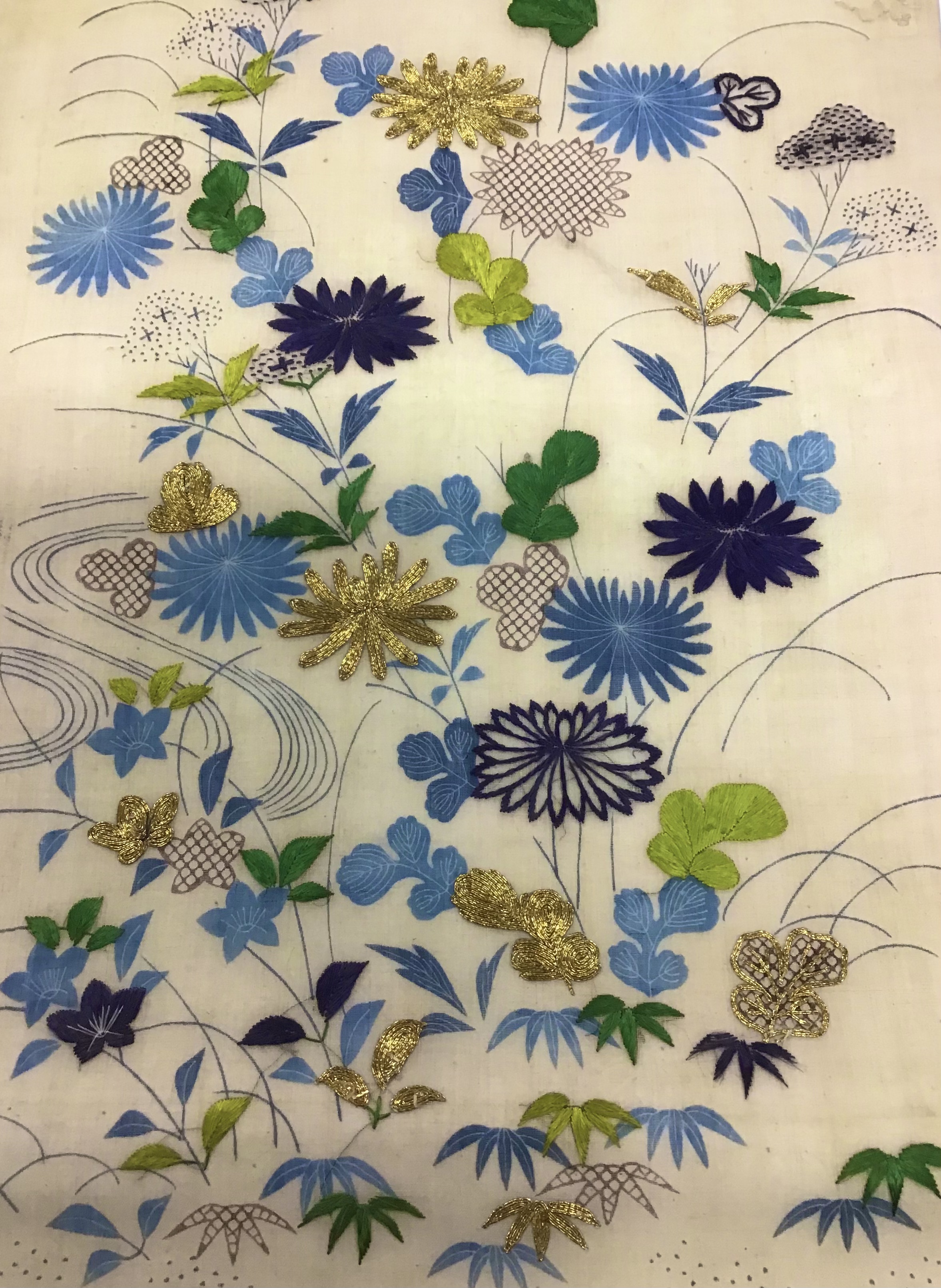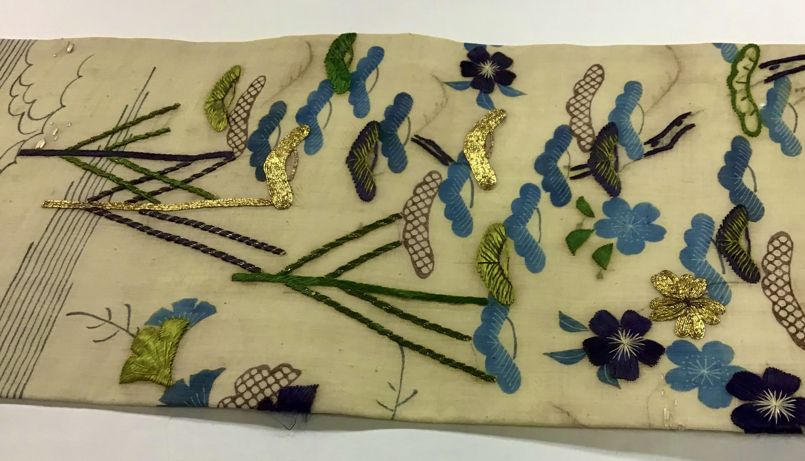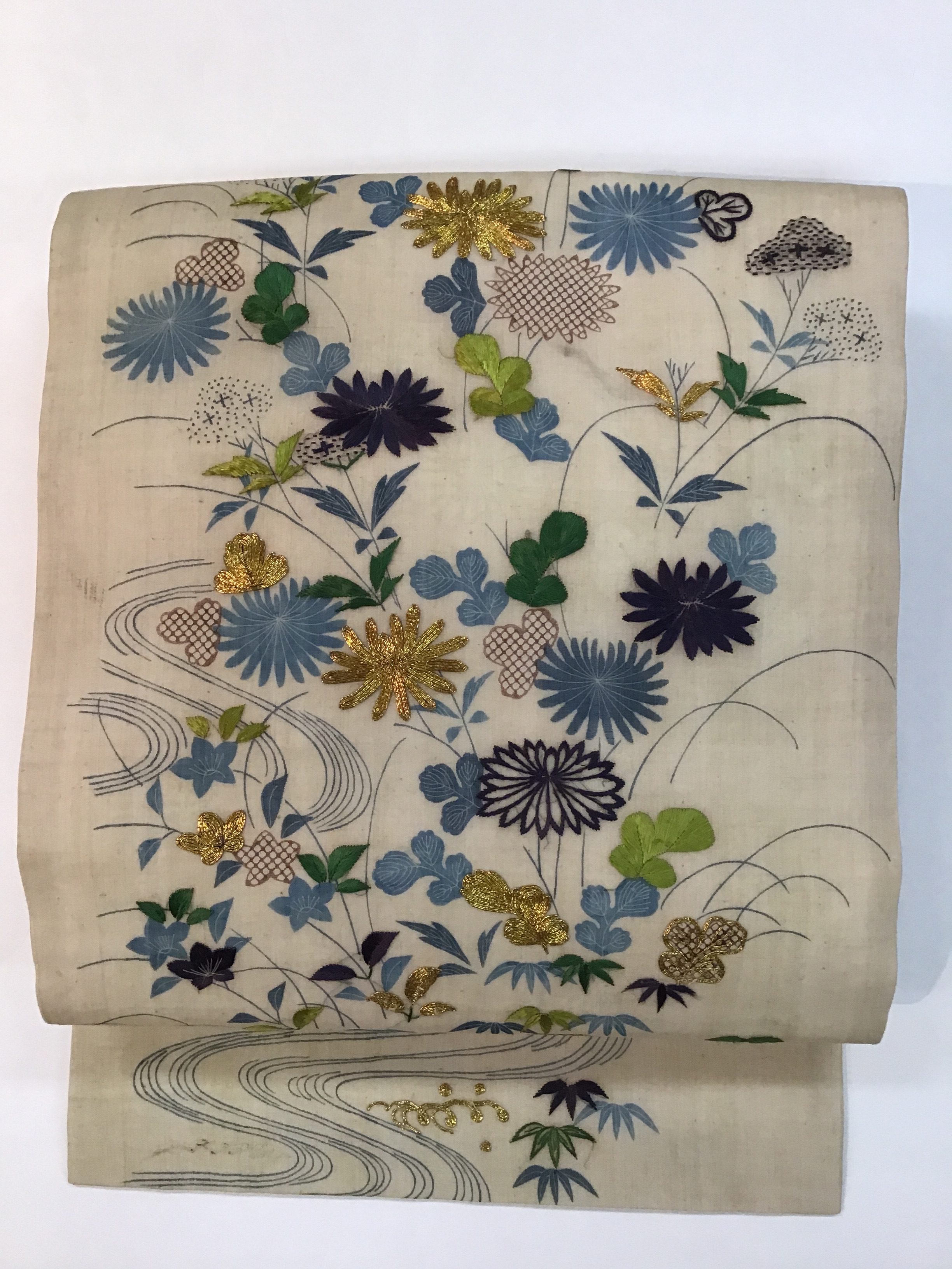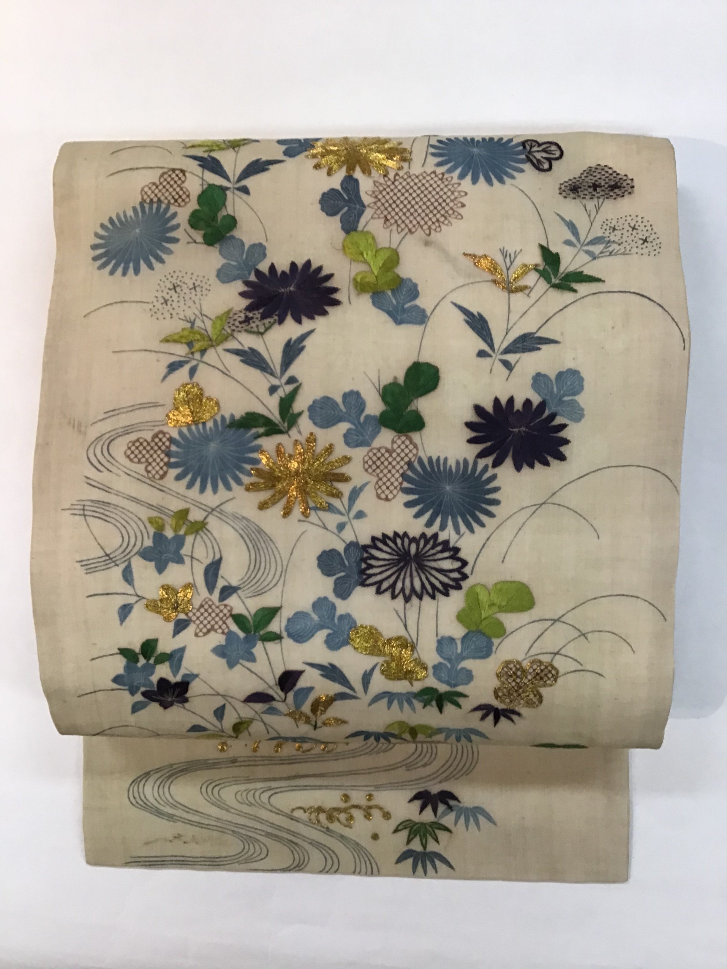 新入荷帯のご紹介です 江戸期帷子の解き物から、夏帯ができました。 状態が良かったので水には、くぐらせず時を経た上布の優しい色味をご覧いただくことにしました。薄藍との取り合わせや糸目糊と藍棒の繊細な線にも、心打たれます。 このお色なら、まだ季節にも間に合いますね。 どうぞ、手に取ってご覧ください。 江戸帷子崩し名古屋帯