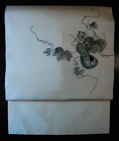 クリーム色の絽に瓢箪をおさえたグリーン系の糸で菅縫いをしたのが涼しげです。