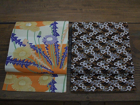 明るい染着物に、たまには渋い帯で落ち着いた雰囲気もいいものです。
