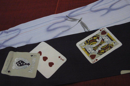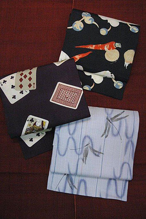 茄子紺地のトランプ柄も同様にランダムな並びがきものをまた楽しませてくれそう。
