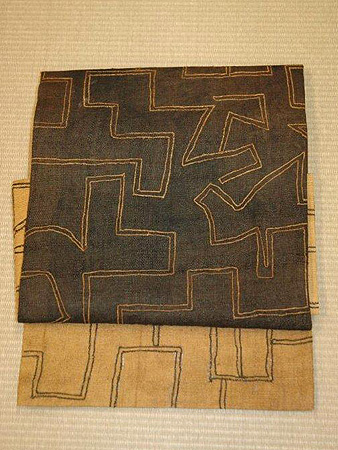 クバ族のラフィアアップリケ付け帯帯に仕立てるにあたって、鋏を入れることにためらいもありますが、新しい形に生まれ変わって日本の女性たちに再び愛されるのも、布にとってはまた一つの幸せかもしれません。
