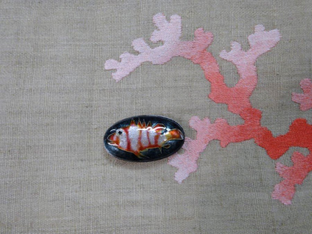 帯留の金魚もいつのまにか近くまで泳いで来ました。とても居心地が良い様子ですね!