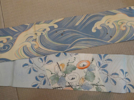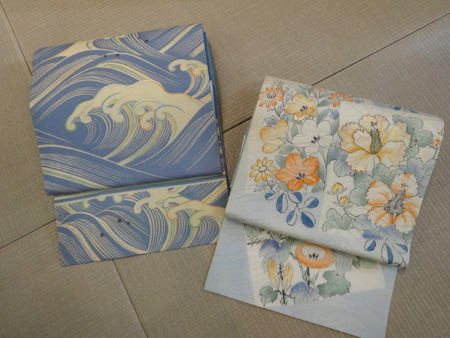 夏の青 コメントを残す 夏に身につける青は、着る人にも見る人にも、冷水に手を浸した瞬間のように、清冽な涼感を与えてくれます。 「藍は夏の色」と、染織家の吉岡氏も断言するように、夏の陽射しには、どうしても、青を求めてしまいます。 躍る波濤(はとう:大きな波)や、のびやかに蔓を這わせ、葉を広げて咲きみだれる夏の花々の帯。 甕覗から浅葱、縹…濃きも淡きも美しい青を、この夏も、飽きずに見つめ続けてしまいそうです。 (写真左から) 波濤の図絽名古屋帯 37,800円 夏の花々紋紗名古屋帯 59,400円 松田
