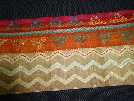 インドのカンタワーク(刺子)サリーを帯にしました。